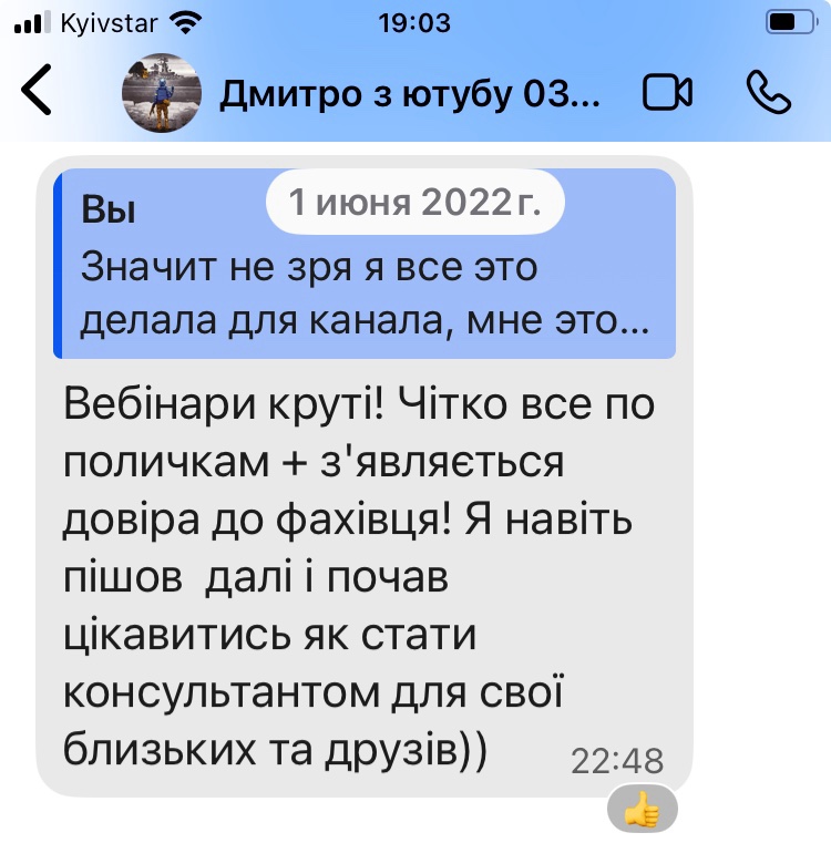 Відгуки на моему каналі в ЮТУБІ і в листуванні з клієнтами: